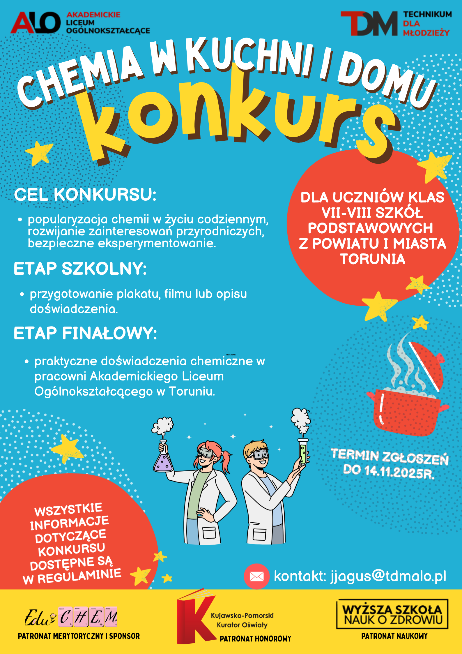 Chemia w kuchni Załączniki zalacznik_terminarz_konkursu.docx [59.60 kB] zalacznik_protokol_komisji_szkolnej.docx [60.81 kB] zalacznik_karta_zgloszenia_ucznia.docx [60.04 kB] regulamin_konkursu_chemia.pdf [379.84 kB] program_merytoryczny_konkursu.pdf [375.52 kB] plakat.png [930.34 kB] Drukuj Udostępnij