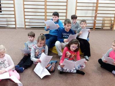 Mikołajki koła teatralnego 8 12.br. –Mikołajki kółkowe, słodkie upominki i takie same … minki ;-) a po przyjemnościach…. Czytanie, z podziałem na role, tekstu przedstawienia.
