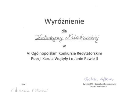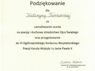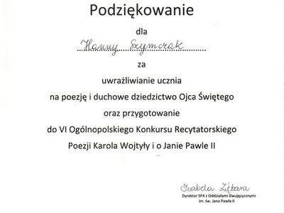 VI Ogólnopolski Konkurs Recytatorski Poezji Karola Wojtyły i o Janie Pawle II”