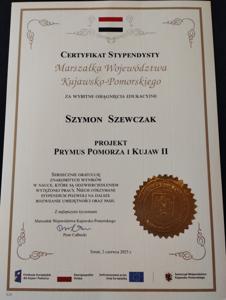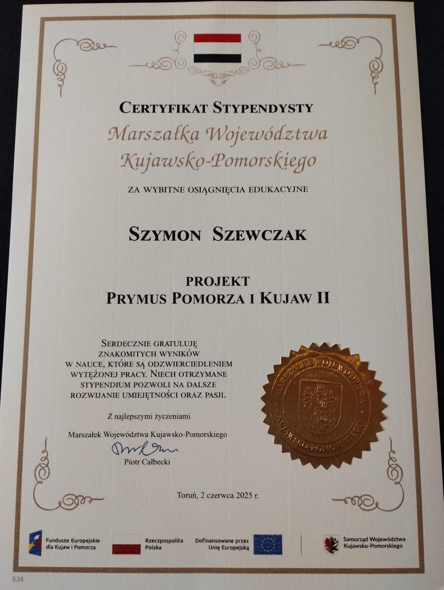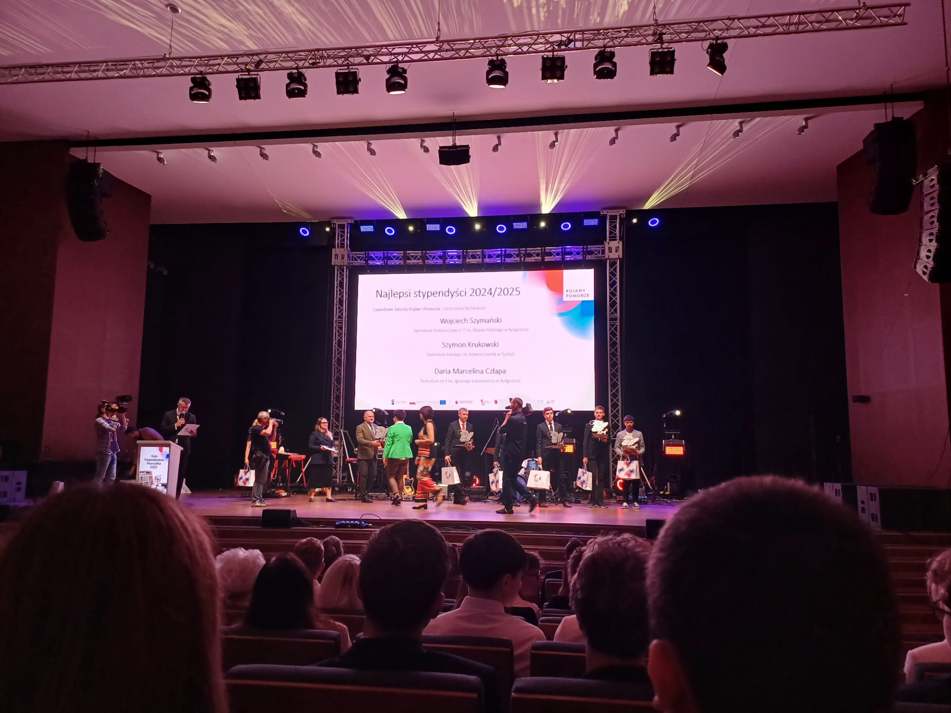 Uczniowie kl.8a, naszej szkoły, 2 czerwca 2025r. uczestniczyli w uroczystej gali stypendialnej marszałkowskich projektów "Prymus Pomorza i Kujaw lIl", ,.Zawodowe Talenty Kujaw i Pomorza" oraz ,Prymus Pomorza i Kujaw Plus" w Auli Uniwersytetu Mikołaja Kopernika. Tymoteusz Zwoliński i Szymon Szewczak zostali stypendystami Marszałka Województwa Kujawsko - Pomorskiego. Uczniowie są laureatami i finalistami konkursów przedmiotowych m.in. z historii, jezyka angielskiego, języka niemieckiego i jezyka polskiego oraz ogólnopolskich konkursów historycznych. Gratulujemy !!!