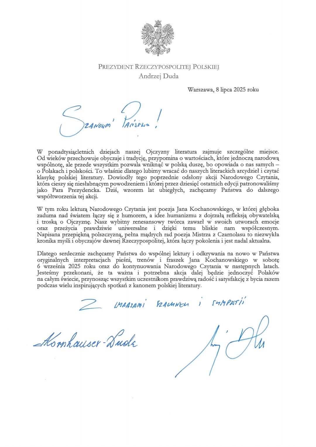 NARODOWE CZYTANIE 2025 Dnia 05.09 w naszej szkole czytaliśmy utwory Jana Kochanowskiego: pieśni, fraszki i treny Mistrza z Czarnolasu. Galeria zdjęć Powiązane wiadomości Rozpoczęcie Roku Szkolnego 2025/2026 Edukacja zdrowotna Dostęp do e-dziennika NARODOWE CZYTANIE 2025 Komunikat Ministerstwa Zdrowia Drukuj Udostępnij Data dodania: 16.09.2025 Wyświetlono: 19 Aktualności