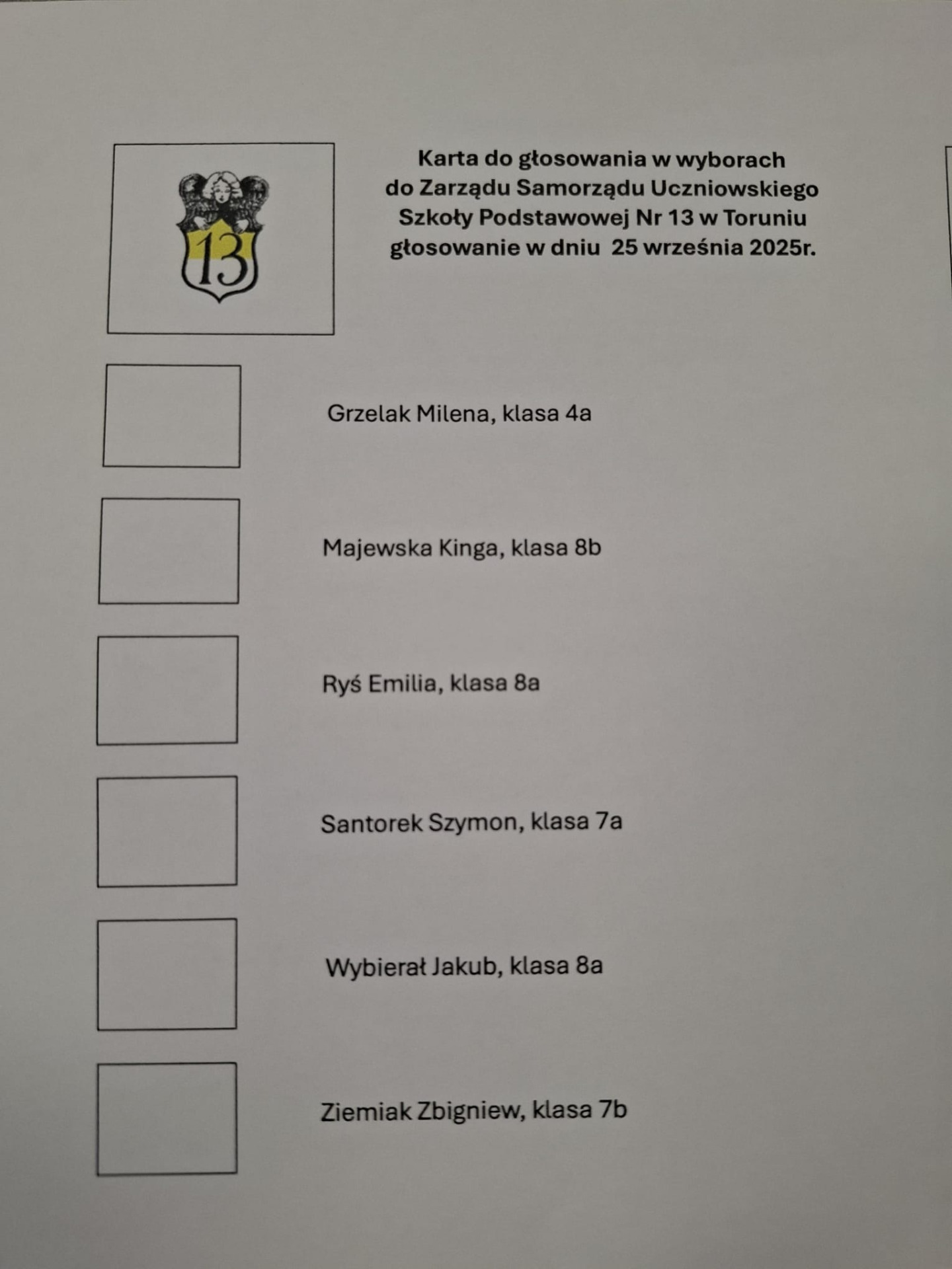 25 września odbyły się w naszej szkole wybory do Samorządu Uczniowskiego kl. 4 - 8. Społeczność uczniowska wybierała przedstawicieli, którzy już niedługo będą mogli realizować swoje pomysły. Frekwencja w głosowaniu wyniosła 80%. Wyniki poznamy wkrótce.