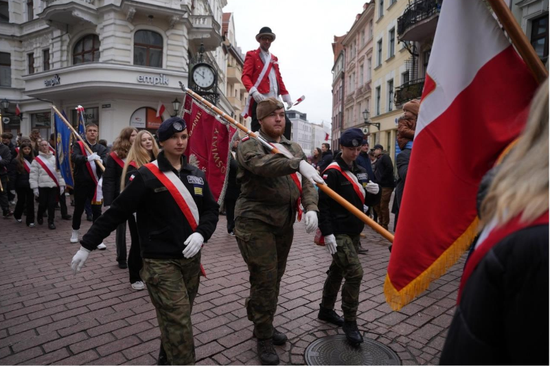 11 listopada 2025r. poczet sztandarowy Szkoły Podstawowej nr 13 im. św. Jana Pawła II w Toruniu uczestniczył w miejskich obchodach 107 rocznicy odzyskania niepodległości przez Polskę.