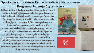 Spotkanie autorskie w ramach realizacji Narodowego Programu Rozwoju Czytelnictwa Galeria zdjęć Powiązane wiadomości Narodowe Święto Niepodległości Przegląd pieśni patriotycznej Świąteczna zbiórka Fundacji "Światło" Spotkanie autorskie w ramach realizacji Narodowego... Konkurs "Odblaskowa szkoła" Warsztaty klasy 6a Drukuj Udostępnij Data dodania: 17.11.2025 Wyświetlono: 4 Aktualności