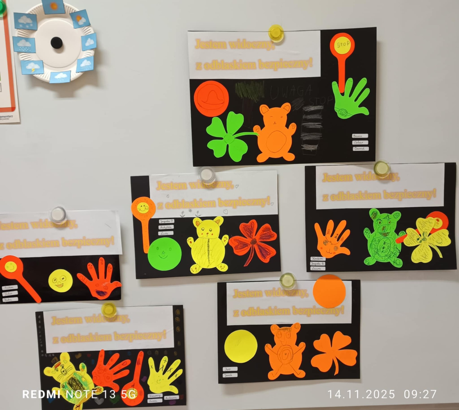 W ramach konkursu "Odblaskowa szkoła", którego organizatorem jest Wydział Ruchu Drogowego Komendy Wojewódzkiej Policji w Bydgoszczy klasy pierwsze stworzyły plakaty z odblaskami 👤🔦✨
