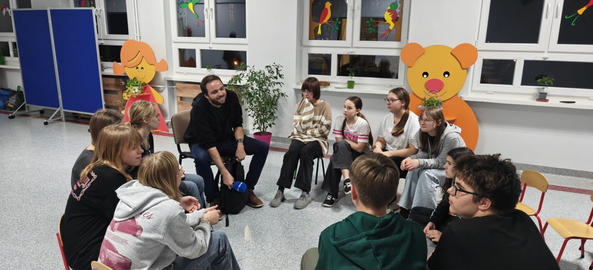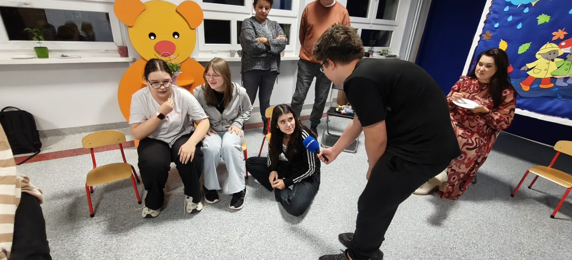 Noc z piątku na sobotę w naszej szkole była niezwykle aktywna i pracowita. Uczestnicy projektu ,,Młodzi dziennikarze", przygotowujący się do przeprowadzenia wywiadów z naszymi Absolwentami, którzy odnieśli sukces, gościli doświadczonych dziennikarzy z Meloradia Toruń, p. Gustawa Nowaka oraz p. Martę Nowicką i p. Waldemara Bujaka z TV Toruń. Podczas warsztatów otrzymali wiele ciekawych i cennych wskazówek, jak przeprowadzić wywiad. Noc była długa, więc był też czas na wspólne zabawy, dyskusje, apetyczne przekąski. W ramach współpracy z Telewizją Toruń zachęcamy wszystkich do polubienia stacji na Facebooku.