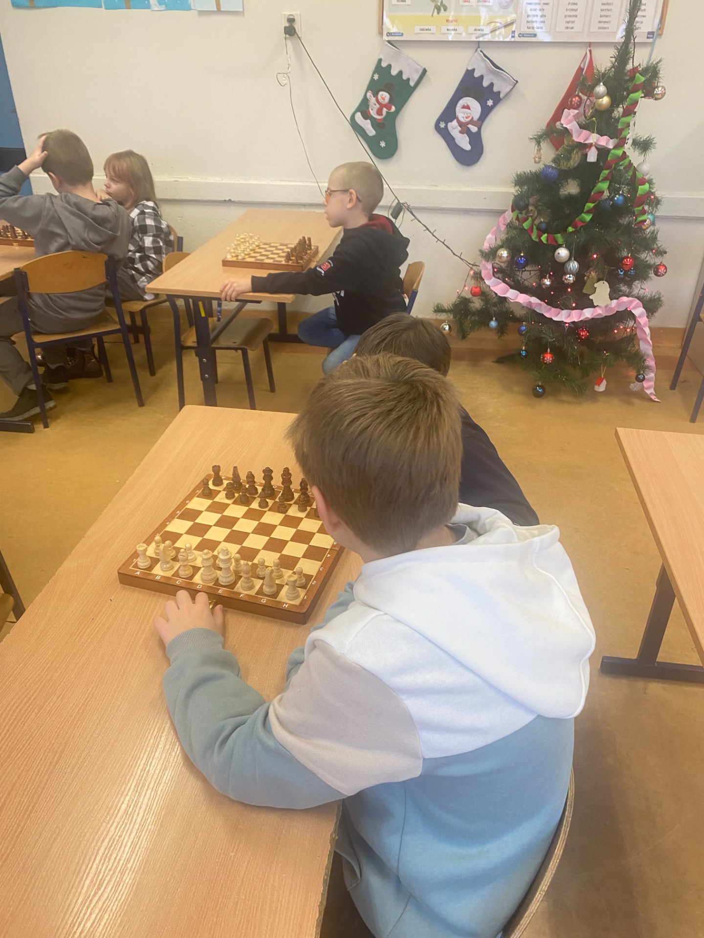 W naszej szkole w dniach 9-10.12 odbył się Szkolny Turniej Szachowy, który jak co roku przyciągnął miłośników królewskiej gry. Uczniowie klas młodszych i starszych rywalizowali w przyjaznej atmosferze, wykazując się skupieniem, cierpliwością oraz umiejętnością strategicznego myślenia. Wydarzenie uświetnił szczególny gość – były trener szachowy, pan Stanisław Dubiel, który od lat wspierał rozwój młodych talentów. Pan Dubiel z zainteresowaniem obserwował pojedynki, udzielał uczestnikom cennych wskazówek oraz dzielił się swoim doświadczeniem. Jego obecność była dla uczniów inspiracją i motywacją do dalszej nauki gry w szachy.