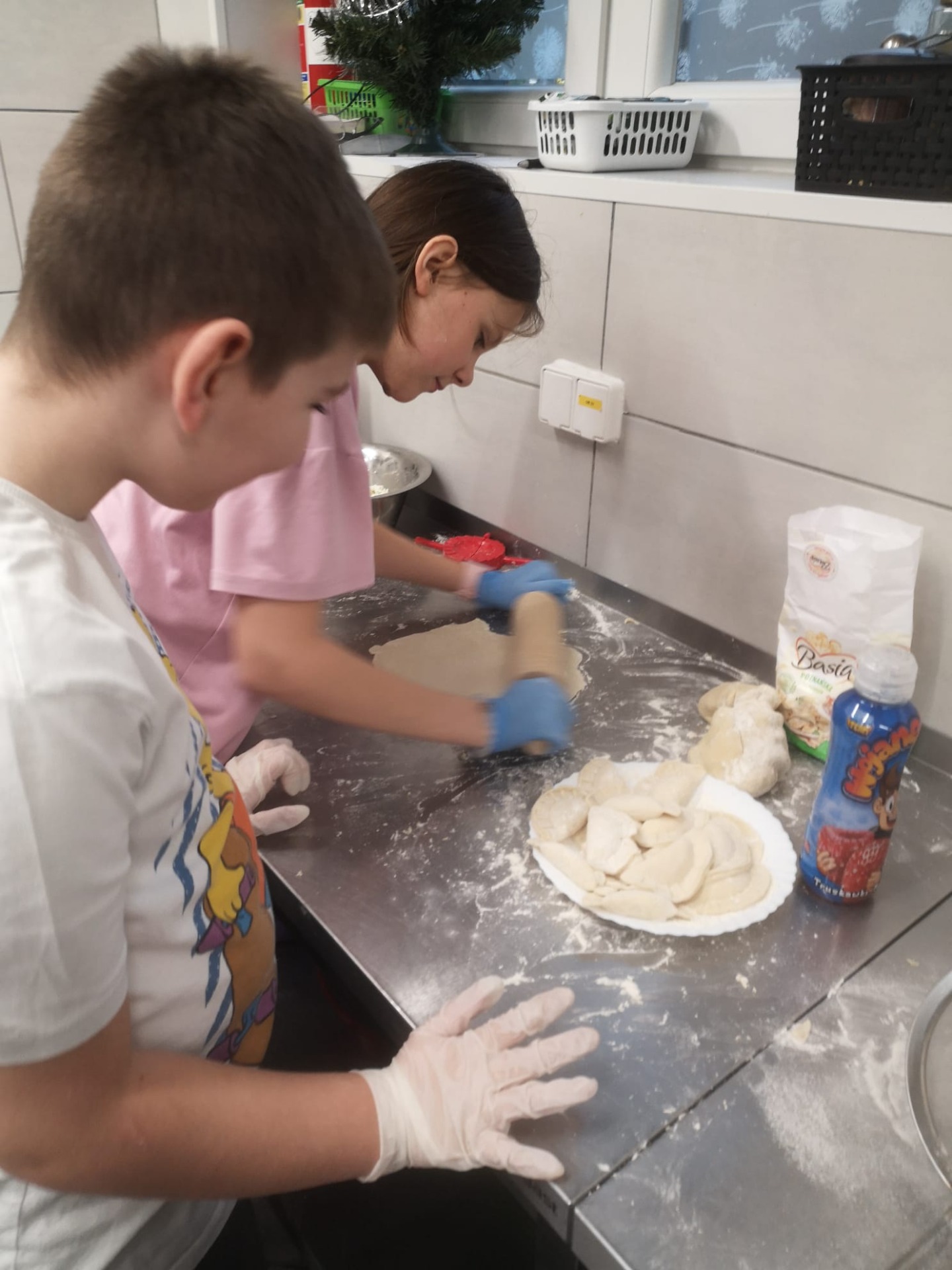 W sobotę 13 grudnia 2025r. odbyły się pierwsze warsztaty w ramach programu „Trzynastu z Trzynastki”. Pierogi z serem i miętą pod nadzorem pani Małgorzaty Babiarczyk samodzielnie i koncertowo przygotowało siedmiu wspaniałych uczniów z naszej szkoły.